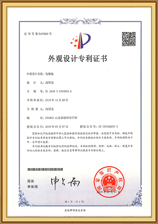 • 外觀設(shè)計(jì)專利證書(shū)